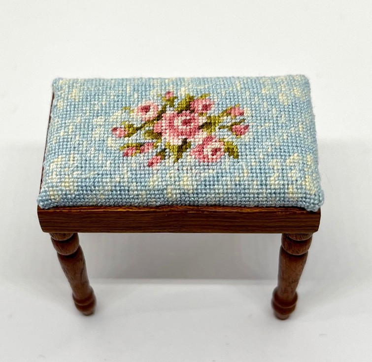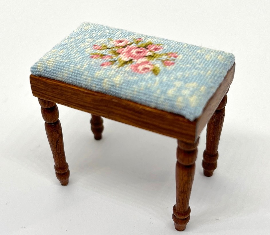 This contains ,Materials for the tapestry cushion insert only. The stool is not included. The stool i used was made in the UK by Masters Miniatures and will be available in my shop very soon. The tapestry cushion will fit any stool where the insert measures approx 4 x 2.6cms or slightly larger (by extending pattern), or smaller.